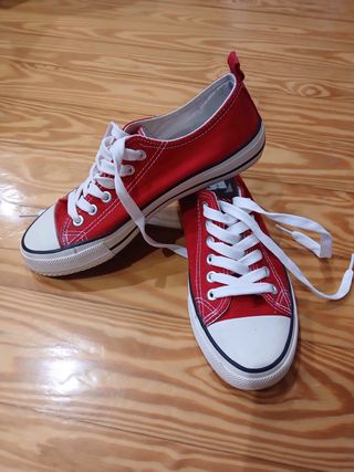 Zapatillas de lona estilo Converse de Primark en buen estado. - Color rojo y blanco. - Talla 36.