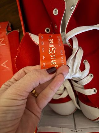 Zapatillas altas de lona tipo converse en color rojo. Nuevas con etiqueta