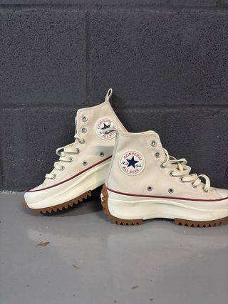 Zapatillas Converse Run Star Hike en color beige y blanco. Un diseño moderno y llamativo. - Plataforma gruesa con suela dentada. - Detalle de ribete burdeos en la suela.