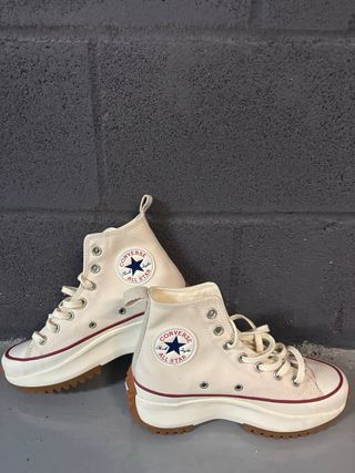 Preciosas zapatillas bota con plataforma para niña, marca Converse, numero 35, tela de color beige y blanco, en perfecto estado, gran oportunidad por solo 30€.