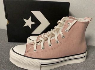Zapatillas Converse altas en color rosa. Interior borreguito. Por fuera son de piel. Nuevas en caja original. No negociable. Se hacen envios. talla 37,5 - Diseño de caña alta. - Suela de goma. - Cierre de cordones.