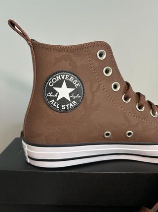 Botas altas Converse en color marrón con un sutil estampado de camuflaje. Cuentan con el clásico parche circular de All Star en el lateral. - Cierre con cordones. - Ojales metálicos. - Tirador en la parte trasera.