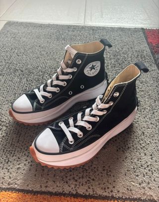 Zapatillas Converse Run Star Hike con plataforma. Zapatillas originales, verdaderas - Modelo alto. - Tela negra. - Cordones blancos. - Suela blanca con detalles en goma.