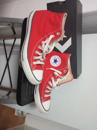 Zapatillas altas Converse de color rojo. - Diseño clásico de caña alta. - Cierre con cordones blancos. - Logo circular de All Star en el lateral.