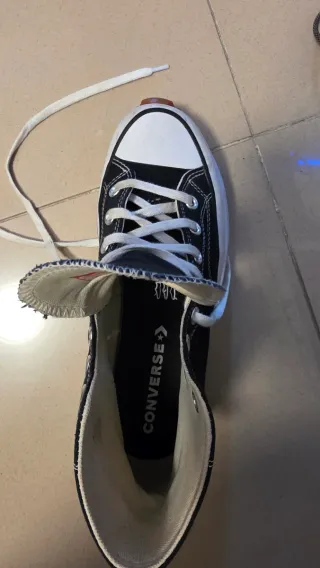 Hola! Vendo mis Converse Run Star Hike de caña alta en color negro. Son el modelo icónico con la suela de plataforma dentada que combina el estilo clásico de las Chuck Taylor con un toque moderno y atrevido. Detalles del producto: Estado: Muy bien cuidadas (puedes verlo en las fotos). La lona está perfecta y la suela mantiene todo su agarre. Color: Negro clásico con detalles en blanco y suela de goma bicolor (caramelo/negro). Talla: 41 Comodidad: Gracias a la plantilla OrthoLite son muchísimo más cómodas que las Converse tradicionales Precio algo negociable para compras rapidas