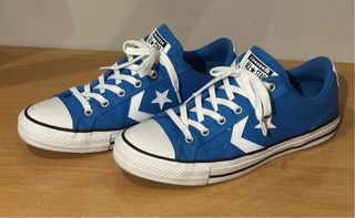 Zapatillas bajas Converse de color azul con detalles blancos. Totalmente nuevas y sin estrenar. - Diseño clásico con estrella. - Cordones blancos. - Suela de goma blanca.