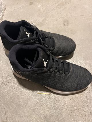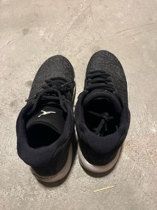 Zapatillas deportivas Jordan en color negro con detalles blancos. Perfectas para baloncesto. - Diseño moderno y cómodo. - Logo de Jordan visible.