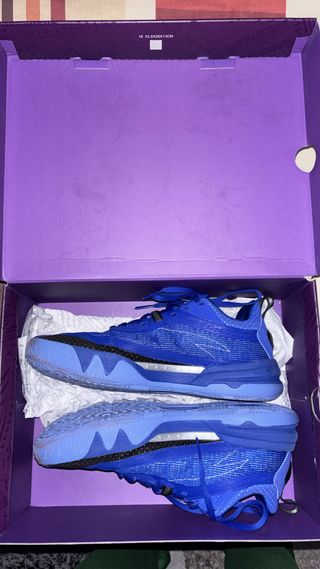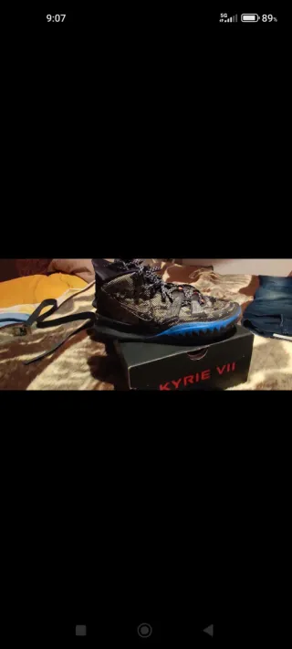 Zapatillas de baloncesto Kyrie Irving en color azul y plata. Diseñadas para un alto rendimiento en la cancha. Precio negociable