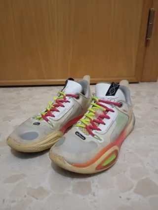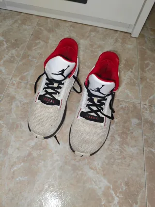 Zapatillas de baloncesto Jordan con un diseño moderno y llamativo. Están prácticamente nuevas pero un poco sucias. La suela está perfecta - Combinación de colores rojo y blanco. - Logo de Jordan en la lengüeta. - Cordones negros. Precio negociable