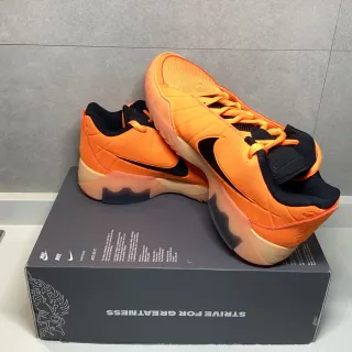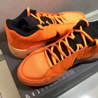Zapatillas de baloncesto Nike con un diseño moderno y llamativo. - Combinación de colores negro, naranja y multicolor. - Estilo de caña alta para mayor soporte. - Cierre con cordones negros.
