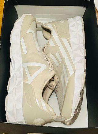 Zapatillas deportivas modernas para hombre. - Diseño contemporáneo. - Combinación de colores blanco y marrón.