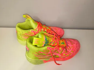Zapatillas de baloncesto Puma con un diseño llamativo y vibrante. - Combinación de colores verde lima y rosa intenso. - Cordones a juego con el diseño. - Detalle de estampado gráfico en toda la zapatilla.