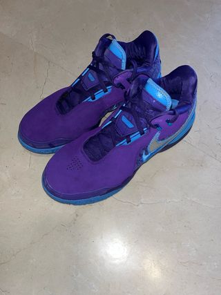 Zapatillas de baloncesto Nike. - Diseño en color verde azulado y morado. - Suela de goma con patrón de tracción.
