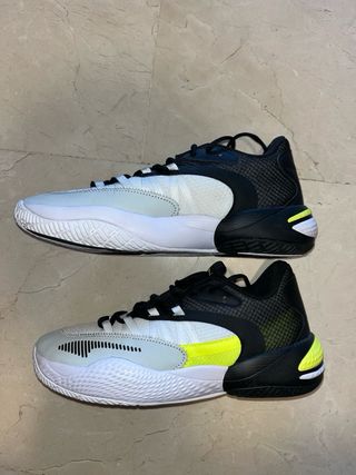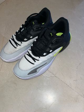 Zapatillas de baloncesto Puma Court Rider 2.0. Están nuevas, prácticamente sin usar. - Diseño moderno en negro y blanco. - Detalles en color verde lima. - Suela blanca.