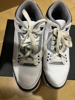 Zapatillas Air Jordan 3 Retro en color blanco y gris. - Diseño icónico de Jordan. - Cordones blancos. - Detalle de costuras.