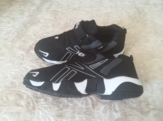 Zapatillas de baloncesto para niño con un diseño moderno y deportivo. - Combinación de colores blanco y negro. - Cierre con cordones para un ajuste seguro. - Suela de goma para mayor tracción.