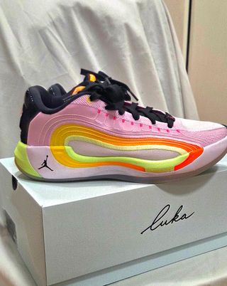 Zapatillas deportivas Jordan con un diseño vibrante y llamativo. - Combinación de colores rosa, amarillo, naranja y verde lima. - Detalle del logo Jumpman en el lateral. - Firma Luka en la caja.
