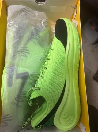 Zapatillas de baloncesto Curry 12 en llamativo color verde. Diseñadas para el rendimiento en la cancha. - Parte superior de malla transpirable. - Suela de goma para mayor tracción. - Cierre de cordones para un ajuste seguro. TALLA 47,5 nuevas a estrenar