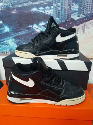 Zapatillas deportivas Nike Flight Legacy en combinación de colores negro y blanco. - Diseño de corte medio. - Swoosh icónico en los laterales. - Detalle de ventilación en la puntera. - Suela de goma para mayor tracción.