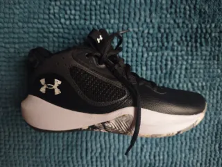Zapatillas de baloncesto Under Armour en color negro y blanco. Diseñadas para ofrecer comodidad y rendimiento en la cancha. - Logo de Under Armour en el lateral. - Cierre con cordones. - Suela de goma con diseño. - Malla transpirable en el empeine.