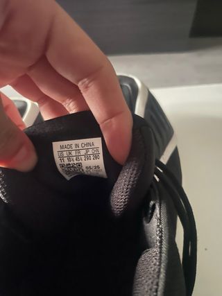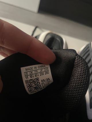 Zapatillas de baloncesto Adidas en color negro. Fabricadas en China. - Talla US 11. - Talla UK 10.5. - Talla FR 45. - Talla JP 290. - Talla CHN 280. - Código de fabricación: 05/25. - Código de modelo: APE 179001.