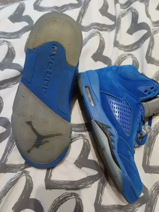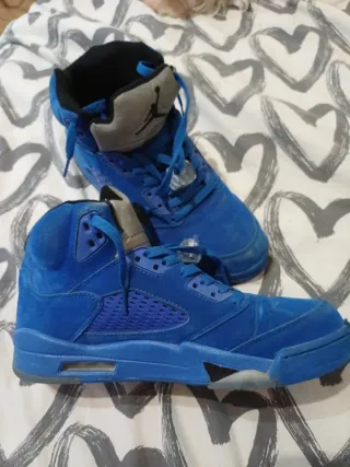 Zapatillas Jordan Retro 5 en llamativo color azul con detalles en gris. - Diseño icónico de las Air Jordan 5. - Materiales de gamuza para un look premium. - Detalles de malla en los laterales. - Suela con amortiguación visible.