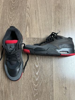 Zapatillas deportivas Air Jordan para niño en colores rojo y negro. Diseño clásico y cómodo muy fashion. Talla americana 8,5 eur 40 pero talla pequeño. - Logo Air Jordan en relieve en el talón. - Combinación de materiales duraderos. - Suela de goma para un buen agarre.
