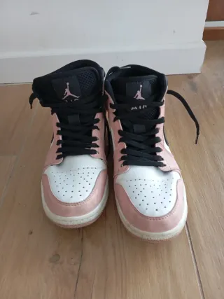 Zapatillas altas de estilo deportivo. - Diseño con paneles en rosa y blanco. - Cierre con cordones negros. - Detalle del logo Air Jordan en la lengüeta.