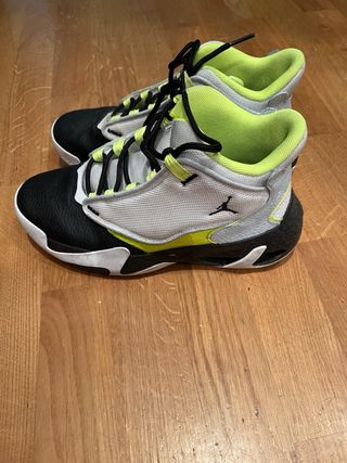 Modelo de la marca Nike Jordan descatalogado. Con señales de uso y del paso del tiempo, como suela amarillenta, pero muy bien conservadas.