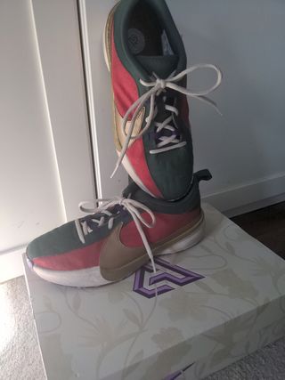 Zapatillas de baloncesto Nike Zoom Freak 5. - Diseño Keep It A Buck. - Combinación de colores verde y rojo. De las mejores zapatillas de baloncesto relación calidad/precio. Ligera, comodas. Se puede ver en la caja el precio real pagado por ellas 109,99. Tengo ticket Corte I.