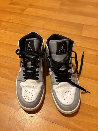 Zapatillas Air Jordan 1 Mid en azul y negro, talla 43. Están en muy buen estado. - Modelo Mid. - Color: combinación de azul y negro. - Ideales para un look casual.