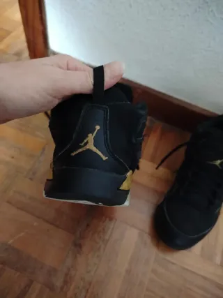 Botines Jordan originales para niño en talla 31.5solo le falta una limpiadita - Color negro con detalles blancos. - Diseño de caña alta.