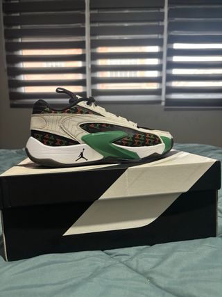 Zapatillas Jordan Luka 2 en talla 2Q. Presentan un diseño moderno con detalles en verde y blanco. - Combinación de colores: verde, blanco. - Estampado geométrico en el lateral.