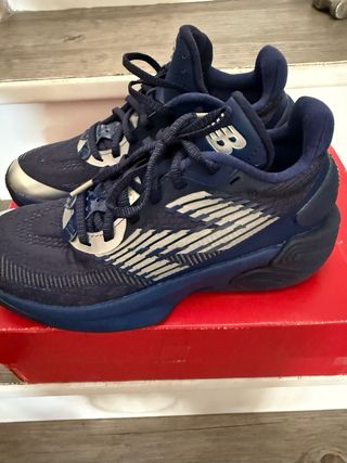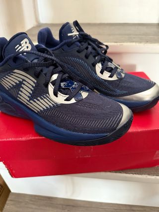 Zapatillas de baloncesto New Balance TWO WXY V5 en color azul y blanco. Diseñadas para un buen rendimiento en la cancha. - Parte superior con detalles en blanco. - Cordones azules. - Suela de goma. Fueron un regalo y no son mi estilo, nuevas din usar