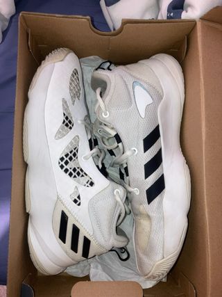 Zapatillas Adidas Trae Young 3 en color blanco y negro. - Talla 43 1/3. - Diseño moderno y deportivo. Solo usadas 3 partidos. Gran amortiguacion