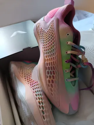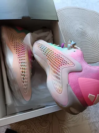 Zapatillas deportivas de baloncesto Antony Edwards 1 Low. Se venden nuevas sin usar. - Diseño moderno con degradado de colores. - Detalles de marca visibles.