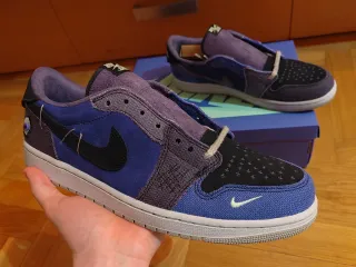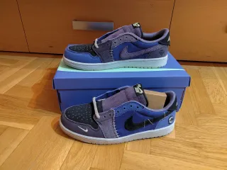Zapatillas Jordan 1 Low edición especial Voodoo de Zion Williamson. Un diseño único con detalles llamativos. - Combinación de colores azul y morado. - Materiales textiles y ante. - Swoosh negro. - Detalle de mini swoosh blanco en la puntera.