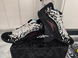 Zapatillas de baloncesto con un diseño moderno y llamativo. - Combinación de colores negro y blanco. - Cierre con cordones. - Detalle de logo en el lateral.