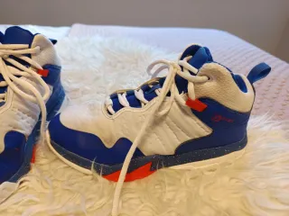 Zapatos de baloncesto de color azul. - Diseño de caña alta. - Cordones para un ajuste seguro. - Suela de goma. - Detalle metálico en los ojales. -Sin caja