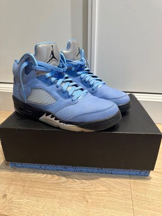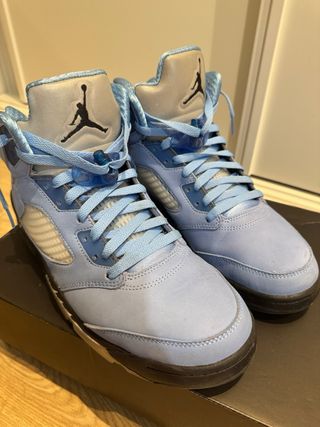 Zapatillas Jordan 5, modelo UNC. - Color azul y gris. - Diseño icónico de Jordan.