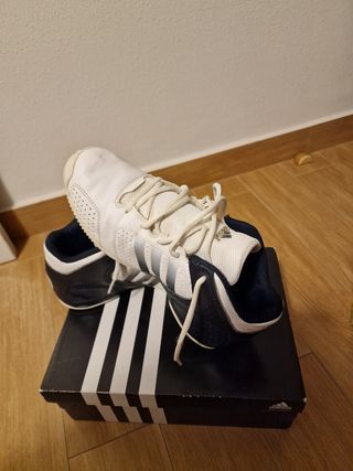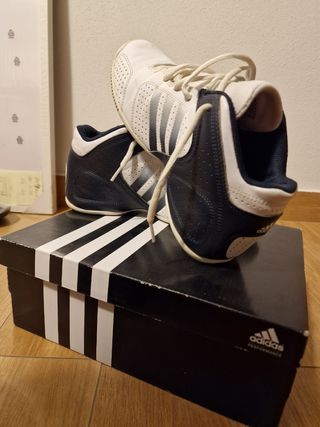 Zapatillas de baloncesto ADIDAS en piel prácticamente sin uso. Muy estables. Dibujo de suelo que facilita tanto el agarre como pivotar. Perfectas para disfrutar de este deporte.