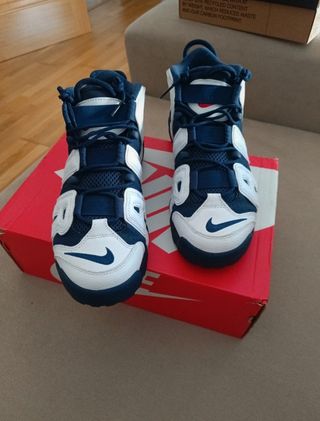 Zapatillas Nike Air More Uptempo 96, en azul y blanco. Talla 42. Están en muy buen estado. 5 usos, solo la suela está manchada de pisar, si aprecian las fotografías están nuevas. Vendo por no usar. - Modelo icónico de Nike - Cómodas y estilosas - Perfectas para el uso diario