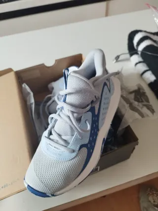 Zapatillas Nike de baloncesto, ideales para jugar o para el día a día. Son de color gris y blanco, con detalles acolchados. - Diseño moderno y cómodo. - Suela resistente. - Perfecto estado.