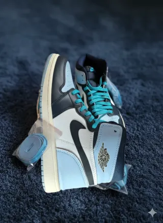 Zapatillas Air Jordan 1 de caña alta. - Combinación de colores buedeos y blanco. - Diseño clásico de Jordan 1.