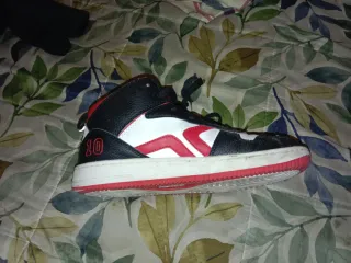Zapatillas de baloncesto de los Chicago Bulls, talla 38 Son de color rojo y están en buen estado. - Diseño con el logo de los Chicago Bulls. - Ideales para jugar baloncesto o usar a diario.