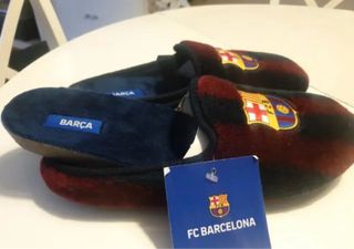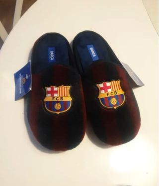 Comodísimas zapatillas de estar por casa con el escudo del FC Barcelona. - Diseño acolchado. - Escudo del FC Barcelona en la parte delantera. - Etiqueta interior con el nombre de la marca.