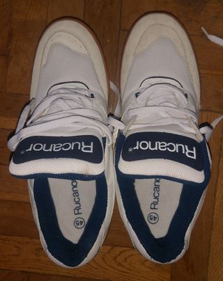 ZAPATILLAS RUCANOR BABYLON. ¡¡¡ÚNICAS!!! CASI A ESTRENAR. ATENCIÓN: TALLA 45. Muy poco uso, no más de cinco y todas por interior de la casa (se ve en las fotos). Zapatillas para deportes de interior o para vestir casual. Zapatillas retro de principios de los 2000. Provienen de colección particular.