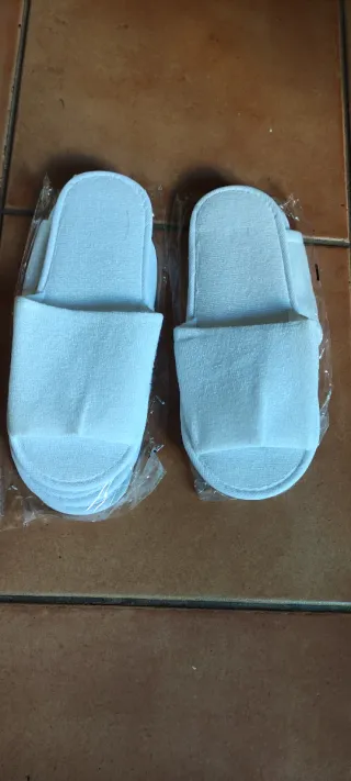 pare de zapatillas de hotel, ideales para usar en casa, para viajes o invitados. - Material suave y cómodo. - Diseño abierto. - Perfectas para estar por casa. 1€ unidad