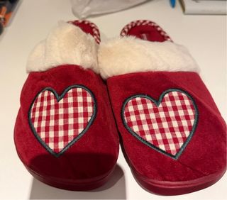 Comodísimas zapatillas de estar por casa de Women'secret con un diseño encantador. Talla M. Nuevas a estrenar. - Color rojo vibrante. - Adorno de corazón a cuadros. - Forro interior suave y cálido.