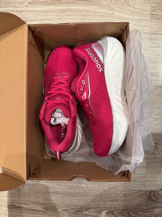 Zapatillas deportivas Saucony Triumph 22 para mujer. - Modelo: Triumph 22 - Talla EUR: 38.5 (US 7.5) - Color: Magenta/Silver - Condición: Nuevas Compradas en rebajas, no se podían devolver pero vienen un poco pequeñas. Probadas solo en casa.